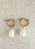 The huggie design ensures a comfortable fit, while the dangling Pikake adds a touch of elegance and movement. Each piece is thoughtfully crafted to capture light beautifully, reflecting the natural hues of the Mother of Pearl.